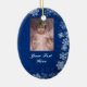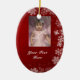 Denna prydnad låter dig tillfoga två foto, ett på bekläda och ett på baksidaen. På sida är utsmyckat rött med vitsnöflingor, andra sidanblåttet med snöflingor. Mycket lätt att skräddarsy.