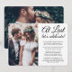 Bjud in familj och vänner till en elegant bröllopsfest med denna stilrena moderna bröllopsinbjudan med 2 bilder och texten "At Last Let's Celebrate". All text är enkel att anpassa för alla typer av evenemang, inklusive mottagning efter vigsel, förnyelse av löften, andra bröllop, 1-årsfirande, cocktailparty eller middag. Anpassa den med dina egna detaljer, som datum, klädkod, rsvp, webbplats, etc. (TIP: Ett enkelt sätt att centrera ett foto exakt som du vill är att beskära det innan du laddar upp det till Zazzles webbplats.) Den moderna minimalistiska svart-vita designen har två bilder av det nygifta paret, trendig handskriven kalligrafi och chic skrivmaskinstypografi. Oavsett om ni rymde och gifte er i all tysthet, hade ett mindre bröllop eller om er speciella dag fick skjutas upp på grund av Covid-19-pandemin, så kan festen ändå börja. Grattis till bruden