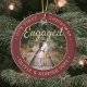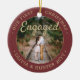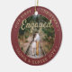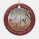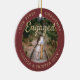 Fira den glatta första helgdag i förlovningen med ett anpassningsbar 2-foto "Vår första jul-motor", rund keramiskt prydnadsämne. All text och bilder på den här mallen är enkla att anpassa och kan vara olika eller likadana framifrån och bakåt. (IMAGE & TEXT DESIGN TIPS: 1) Lägg till blanksteg i början eller slutet om du vill justera skrivläget. 2) Om du vill centrera fotot exakt så som du vill kan du placera det i kvadratisk form innan du laddar upp det till Zazzles webbplats.) Som en idé kan skripttypografin läsa "Tillsammans" eller "Gift". Utformningen har en snyggt borstad burgundröd ombre gräns, handskriven stil-kalligrafi, parets namn & år och två bilder efter eget val. Observera att guld är tryckt på färg, inte metallfolie. Detta unika och moderna bröllop-keepsaké ger en elegant vid dekorationerna i Julafton. Gör en söt möhippa-gåva till bruden.