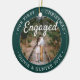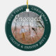 Fira den glatta första helgdag i förlovningen med ett anpassningsbar 2-foto "Vår första jul-motor", rund keramiskt prydnadsämne. All text och bilder på den här mallen är enkla att anpassa och kan vara olika eller likadana framifrån och bakåt. (IMAGE & TEXT DESIGN TIPS: 1) Lägg till blanksteg i början eller slutet om du vill justera skrivläget. 2) Om du vill centrera fotot exakt så som du vill kan du placera det i kvadratisk form innan du laddar upp det till Zazzles webbplats.) Som en idé kan skripttypografin läsa "Tillsammans" eller "Gift". Utformningen har en modern, minimalistisk grönt och vit gräns, handskriven kalligrafi i stil, parets namn & år och två bilder efter eget val. Den här unika bröllop-keepsakén gör en söt möhippa-presentidé för bruden och tillför en elegant till Julafton-dekorationer.