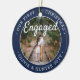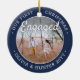 Fira den glatta första helgdag i förlovningen med ett anpassningsbar 2-foto "Vår första jul-motor", rund keramiskt prydnadsämne. All text och bilder på den här mallen är enkla att anpassa och kan vara olika eller likadana framifrån och bakåt. (IMAGE & TEXT DESIGN TIPS: 1) Lägg till blanksteg i början eller slutet om du vill justera skrivläget. 2) Om du vill centrera fotot exakt så som du vill kan du placera det i kvadratisk form innan du laddar upp det till Zazzles webbplats.) Som en idé kan skripttypografin läsa "Tillsammans" eller "Gift". Utformningen har en snyggt modern minimalistisk marin blå och vit gräns, handskriven kalligrafi i stil, parets namn & år och två bilder efter eget val. Den här unika bröllop-keepsaken ger en elegant vid dekorationer i Julafton.