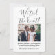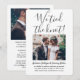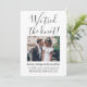 Bjud in familj och vänner till en elegant bröllopsfest med denna stilrena moderna "vi knöt knuten" 2-foto-inbjudan. All text är enkel att anpassa för alla firanden efter bröllopet, inklusive efterfest efter vigsel i det tysta, förnyelse av löften, efterbröllop, 1-årsdag, cocktailparty eller middag. Anpassa den med dina egna detaljer, som datum för bröllopet, dresscode, rsvp, webbplats, etc. (TIP FÖR BILDPLACERING: Ett enkelt sätt att centrera en bild exakt som du vill är att beskära den innan du laddar upp den till Zazzles webbplats.) Den moderna minimalistiska svart-vita designen har två bilder av det nygifta paret, trendig handskriven kalligrafi och chic skrivmaskinstypografi. Oavsett om ni gift er i det tysta på grund av covid-pandemin eller valde att nedskalning till en mindre och mer