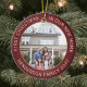 Gratulera till glädjen i ditt nya ställe med en anpassningsbar med två foto "Första jul i vårt nya hem", burgundi och guld runt keramiskt prydnadsföremål. All text och bilder på den här mallen är enkla att anpassa och kan vara olika eller desamma på framsidan och baksidan. (IMAGE & TEXT DESIGN TIPS: 1) Lägg till blanksteg i början eller slutet om du vill justera skrivläget. 2) Om du vill centrera fotot exakt så som du vill kan du placera det i kvadratisk form innan du laddar upp det till Zazzles webbplats.) Utformningen har en elegant maronröd borstad gräns, en modern, minimalistisk typografifamilj namn & år och två bilder efter eget val. Observera att guld tryckte färg, inte folie. Den här unika familjekvarnén tillför en snyggt till Julafton hemmabruk eller gör en tänkbar hemmavarsliknande dekoration. Det finns ingen ställe som ett nytt hem för helgdagarna!