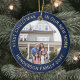 Gratulera till glädjen i ditt nya ställe med en anpassningsbar med två foto "Första julen i vårt nya hem" marinblått och guld runt keramiskt prydnadsföremål. All text och bilder på den här mallen är enkla att anpassa och kan vara olika eller desamma på framsidan och baksidan. (IMAGE & TEXT DESIGN TIPS: 1) Lägg till blanksteg i början eller slutet om du vill justera skrivläget. 2) Om du vill centrera fotot exakt så som du vill kan du placera det i kvadratisk form innan du laddar upp det till Zazzles webbplats.) Utformningen har en elegant som borstat marinblått gräns, en modern, minimalistisk typografifamilj namn & år och två bilder efter eget val. Observera att guld tryckte färg, inte folie. Den här unika familjekvarnén tillför en snyggt till Julafton hemmabruk eller gör en tänkbar hemmavarsliknande dekoration. Det finns ingen ställe som ett nytt hem för helgdagarna!