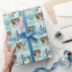 Den här julklappen som är papper erbjuder två kvadratiska foto ramar för dina favoritfoton i familjen. Bakgrunden är en ljusblå elegant med vit snöflingor och den handskrivna texten "Joy" i stil. Anpassa den här presentfigursättningen för helgdag med dina foton och namn.