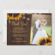 Elegantens chic, sommar- eller fall-bröllop-snyggt, tack vare att du har en kortmall på bruna lingträ med vackra solblommor, buketter, strängar eller tvinklad ljus, och ett chic faux guld calligraphy-skript. +++++++++++++ Enkel att anpassa med information och två foton på framsidan och baksidan! +++++++++ Lämpligt för elegant sommar- eller höstfallande land utomhusbak eller bröllop i ladugård.