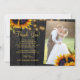 Elegantens chic Sommar- eller faller-bröllopsmodell tack vare snyggten med ett kort på mörk bruna lingträ med vackra solblommor, bouquets, strängar eller tvinklat ljus och ett chic-faux-kalligrafi-skript från guld. +++++++++++++ Enkel att anpassa med information och två foton på framsidan och baksidan! +++++++++ Lämpligt för elegant sommar- eller höstfallande land utomhusbak eller bröllop i ladugård.