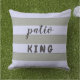 En enkel, klassande och rolig design! Vågrät rand färgad pastellblått, på grått- bakgrund som kan justeras mot färg. Texten säger "KUNG" på ena sidan och "trädgårdsmästare" på den andra. Texten kan lätt anpassas för att skapa roligt och lämpliga alternativ, kanske till och med kontrasterar på varje sida av kudden. Med flera kuddar kan det till och med förvandlas till något slags roligt-spel. Designidén finns i flera färg-versioner med rand färgad pastel gult, pastellröd, pastellblå grönt, pastellblå, vit, svart eller grått.