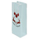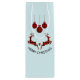 En vin-presentpåse som säger "God jul" i böjd text. Designad med en illustration av 2 jultomtens hjort. Hjorten består av rött och svart lumberjack, med lite hjärta mellan dem. Röd och svart plaid Juldekorationer ner från toppen. Ljusblå bakgrund.