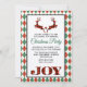 En julparbjudan med en illustration av två julklappande hjortar. Hjorten består av rött och svart lumberjack, med lite hjärta mellan dem. Ord Joy vid grund har också försetts med en rödhårig struktur. Bakgrunden är ett rött argument och ett argument för grönt mönster.