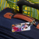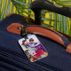 Din 2-foto-personlig resresgodsagenummer med utbytbara kontaktuppgifter på baksidan. Se till att väskan eller fodral står ut och att de lätt kan hittas efter ankomsten.