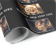Modern 2 Photo Collage Black Gott nytt år Wrapping Papper. Lägg till två av dina favoritfoton i helgdag. Gott nytt år står i ett trendig och ett modernt vitt skript.