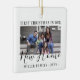 Gratulera till glädjen i ditt nya ställe med ett anpassningsbar 2-foto "Första julen i vårt nya hem", svart och vit kvadratisk keramisk prydnadsprodukt. Text och bilder på den här mallen är enkla att anpassa. (IMAGE PLACEMENT TIP: Ett enkelt sätt att centrera ett foto exakt som du vill är att flytta det till skörd innan du laddar upp det till Zazzle-webbplatsen.) Utformningen har modern handskriven kalligrafi i stil-skript, minimalistisk skrivmaskin-typografi i namn och år samt två bilder efter eget val. Den här unika familjekvarnén tillför en snyggt till Julafton hemmabruk eller gör en tänkbar hemmavarsliknande dekoration. Det finns ingen ställe som ett nytt hem för helgdagarna!