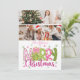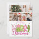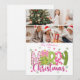 2 Photo Pink Green Bow Tree Merry Christmas Julkort