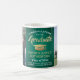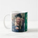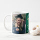 Minneshögtidlighålla student landvinning med anpassningsbar 2 fotot grönt, guld och vitt kaffe mugg. Bilder och all text är enkla att anpassa. Ta med alla favoritcitat, motiveringsordspråk, namn och examen i skolan, grattisar, tack vare mamma och pappa, eller något annat budskap som du väljer. Utformningen har en grönt med fläckfri bakgrund av rostfritt stål, faux foil studentmössa, personlig modern typografi namn, skola och klassår, och två foton som du själv väljer, t.ex. äldre bilder eller bilder från startceremonin. Observera att guld är tryckt på färg, inte metallfolie. Det är en tankfull julklapp och en elegant till hemsdekoration. Grattisar till student!