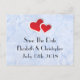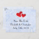 Spara bröllop-vykortet med en illustration av två pappra hjärtan gått med ihop - röd med vit gräns. Ange blå marmorbakgrund för isigen elegant.