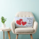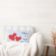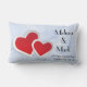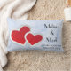 En lumbalkudde med en illustration av två pappra hjärtan gått med ihop - röd med vit gräns. Ange blå marmorbakgrund för isigen elegant.