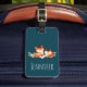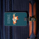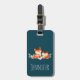 Ett bagagemärke med två röda rävar teckning. Den ena står upp för den andra. Ritad med vattenfärg.