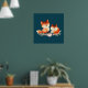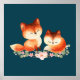 En poster med två röda rävar teckning. Den ena står upp för den andra. Ritad med vattenfärg.