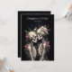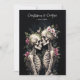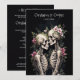Two Romantic Gothic Skeletons Embracing with Elegant Floral Arrangements Dark Romance Wedding Invitation.