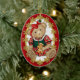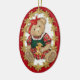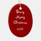 En nalle flicka med stor röd bugg, julklappade kläder och en kaka för gingerbröd. Bakom denna julprydnad säger Beary God jul 20XX. Redo för att anpassa datumtexten. Roligtens gåva eller keepsaké.