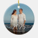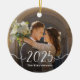 2-Sided 2025 Elegant Script Overlay Double Photo Julgransprydnad Keramik