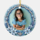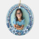 Honor the memory of a beloved daughter with our Celestial Bloom custom ceramic ornament. Designed in soothing shades of blue and white, this keepsake features a delicate floral wreath, silver stars, and a graceful frame that surrounds your personalized tribute. Whether displayed on a holiday tree or kept year-round, it serves as a gentle reminder that love endures beyond time.