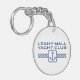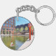 Rund akryl nyckelring är tvåsidig: blå Logotyp på framsidan, bild av Gene Leahy Mall Pond & Boat Cove på baksidan.