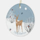 Denna vackert målade prydnadsföremål har två olika utformningar. En sida har en söt doe som står i en snöskugga, bland buskar och massor av blå fåglar. Det står God jul vid grund. På baksidan finns en antika senapssalboxkolonier med gult i träd i bakgrunden. En sötröd räv har kom att undersöka. Uppdatera året på baksidan med hjälp av länken "Anpassa den här mallen".