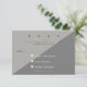 En enkel R.s.v.p.-utformning (Répondez S'il Vous Plaît) i två ton grått, med texten linjer: Svara senast (anpassningsbarnas datum), gäster namn, valet: accepterar med glädje, gäster som deltar och avvisar med beklagande
