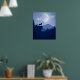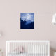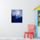Howling varg vid måne 2D blå landskap. Det här blir en fin utgåva av vargens väggkonst.