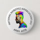 Den 30 april är Hairstyle Appreciation Day-knappen för en skönhetssalon, hårstilist. Man med en färgfull mohawk.