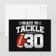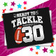 Denna fotbollsfödelsedagsdesign är perfekt för en 30-årsdag fotbollstema födelsedagsfest för att fira att man blir 30 år! Innehåller 'Redo att tackla 30' 30-årsdag fotbollscitat med fotbollsgrafik. Perfekt för alla som älskar fotboll som blir 30 år!
