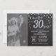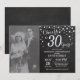 30-års bröllopsdag med anpassad bild. Kritskriftsbräda svart och silverinbjudan. Trettio års bröllopsdag. Kritskriftsbräda svart och silver glitter diamantbakgrund. Silverkonfetti. Födelsedagsfirande för vuxna. Kvinnlig eller manlig födelsedagsfest. För ytterligare anpassning, klicka på "Anpassa"-knappen och använd vårt designverktyg för att ändra denna mall.