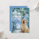 Inbjudan Födelsedagsfirande Party Firande tillkännagivande, Vinter Blå Vita Blommor bakgrund och Golden Retriever . Anpassa för alla evenemang.Golden Retriever