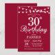 30-års födelsedagsinbjudan med strängljus. Burgunderröd bakgrund. 13:e 15:e 16:e 18:e 20:e 21:a 30:e 40:e 50:e 60:e 70:e 80:e 90:e 100:e, Alla åldrar. För ytterligare anpassning, klicka på "Anpassa"-knappen och använd vårt designverktyg för att ändra denna mall.