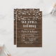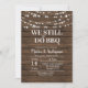 Strängljus Vi firar fortfarande årsdags inbjudningskort, rustic inbjudningskort med rustik och trädgård bakgrund.