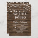Strängljus Vi gör fortfarande årsdags inbjudningskort, rustic inbjudningskort med rustik och trädgård bakgrund.
