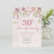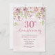 Vacker traditionell 30-årsjubileum inbjudan med vackra rosa rosor och magnolia och en enkel mönstrad bakgrund.