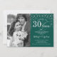 30-års bröllopsinbjudan med foto. Elegant design i silver och smaragdgrön med skrivstil och konfetti. Kan anpassas för alla år av äktenskap. Skål för 30 år!