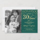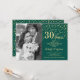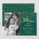 30-års bröllopsinbjudan med foto. Elegant design i guld och smaragdgrönt med skrivstil och konfetti. Kan anpassas för alla år av äktenskap. Skål för 30 år!