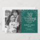 30-års bröllopsdag inbjudan med foto. Elegant design i smaragdgrön med falskt silver skriftstil och konfetti. Skicka mig ett meddelande om du behöver anpassat år.