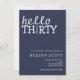 Säg "hej till trettio" med denna moderna och snyggt vuxen födelsedagsfest inbjudan. Den enkla blå bakgrunden i marinen kompletterar den vita texten och ljusdetaljen och lägger till en kurva till designen. Avslappnaden ger uttryck för en känsla av spänning inför det kommande firande. Denna contemporary och minimala inbjudan är perfekt för en födelsedagsfest med milstolpe. Redo för dig att anpassa och skicka ut till alla dina nära och kära, vilket är en praktisk digital nedladdning. Gör din 30:e fantastiska med inbjudan till honom eller henne!