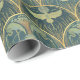 Kraner på flykt och promenader mellan raser framför fullt måne. En elegant med rik guld och djup teal.