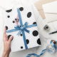 Svarta och vita fläckade Dalmatien papprare...perfekt för Dalmatien älskare i ditt liv! Använda det att slå ihop julklappar med rött och grönt i extra eller för en födelsedagspresent eller en födelsedagspresent. Svarta och vita följer med varje färg för varje tillfälle!