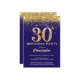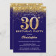 30års födelsedag: Blått och Guld Glitter Konfetti Inbjudningar