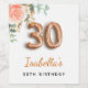 För en elegant och en feminin 30års födelsedag-födelsedagsfest. En vit chic bakgrund. Dekorerad med en ro guld och en rosa vattenfärgad blomma, blommigt, grönt eucalyptus löv, spriter, grönsaks- och faux ro sprigs. Personalisera och namn. Svarta och gyllene brev. Namn är skrivet med ett modernt handskript i stil. Nummer 30 är skrivet med ett gyllene stil-teckensnitt.