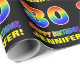 Den här roligten, den roliga och färglösa pappra designen har ett stort nummer "30" och meddelandet "GRATTIS PÅ FÖDELSEDAGEN", som båda har en regnbågsspektrumövertoning som inspirerade mönster-färgning, tillsammans med en fet gult personlig-mottagare namn. Bakgrunden är svart på färgad. Roligt som är papper som denna kan användas när man slår in presenter som ges till någon i firande på trettioårsdagen. [~Z0000475]