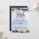 En inbjudan från 30års födelsedag-partiet i snyggt. Utformningen har marinblå och guld-ballonger, Guld-glitterstjärnor och marinblå text på blekens blå övertoningsbakgrund. En underbar design som bjuder in dina gäster att gå med dig för en 30års födelsedag party firande. Enkel att anpassa med din egen party-information.