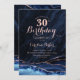 Partiinbjudan till 30års födelsedag går till marinblått och ro guld. Elegantens moderna utformning med royal blue water agate marble geode-bakgrund, faux glitter ro guld och typography-skript. Trendig inbjudan-kortets perfekt för en snyggt kvinnor i firande. Skrivna Zazzle-inbjudningar eller digital utskrivbar mall för omedelbar nedladdning.